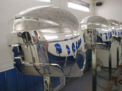 Verspiegelungtechnik Verspiegeln heißt, eine Oberfläche mit reinstem Silber zu beschichten. Zum Schutz dieser hauchdünnen Silberschicht (1/10µ) gegen Beschädigung, Oxydation oder Verfärbung etc. werden anschließend 2 Spritzgänge Klarlack aufgebracht. Mit diesem Verfahren können alle lackierbaren Substrate wie z. B. Holz, Kunststoffe oder Metalle beschichtet werden. Das neuartige Verfahren enthält, im Gegensatz zu der herkömmlichen Galvanik, keine umweltbelastenden Schwermetalle. Das während des Prozesses anfallende, überschüssige Silber wird in Auffangwannen gesammelt, getrocknet und zu 100% recycelt. |